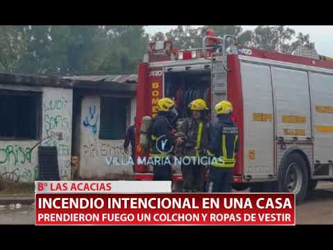 13/06/2019 Una vivienda ubicada en Los Ceibales y Los Abedules, de barrio Las Acacias, fue alcanzada por el fuego luego de que una o varias personas prendieron un colchón y ropas de vestir. La casa se encuentra deshabitada. Habla el jefe de bomberos voluntarios, Gustavo Nicola.