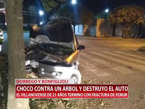 30 /07/2018 Chocó contra un árbol y destruyó el auto, el villanovense de 21 años terminó con fractura de fémur.