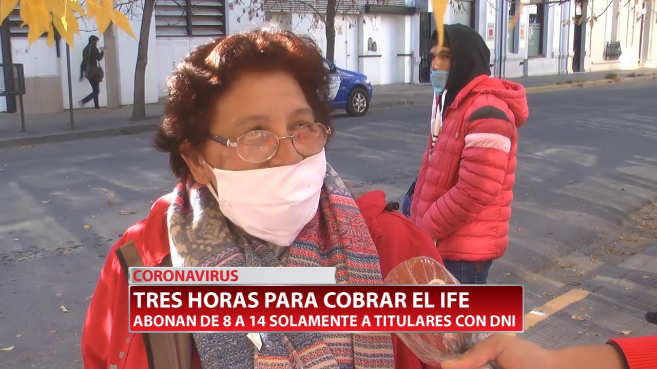 14/05/2020 Retrasos de tres horas para cobrar el Ingreso Familiar de Emergencia en el Correo Argentino, a pesar que la atención es rápida. Pagan de 8 a 14 solamente a titulares con DNI.