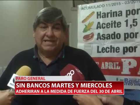 26/04/2019 Sin bancos martes y miércoles. Adherirán a la medida de fuerza del 30 de abril. Habla el secretario Del Interior de La Bancaria, Omar Bardenesca.