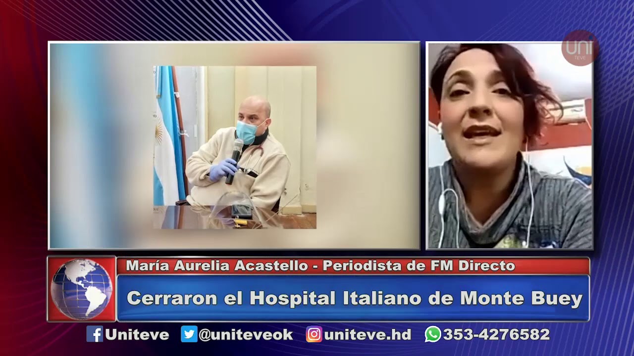 12/08/2020 El COE Central resolvió cerrar el Hospital Italiano de Monte Buey, debido al contagio del personal de salud que trabaja en la institución. En las últimas horas, según trascendió, se habrían contagiado seis enfermeros y un médico. El cierre sería por 14 días y se dispuso también el aislamiento para todo el personal. Lo cuenta la periodista María Aurelia Acastello.