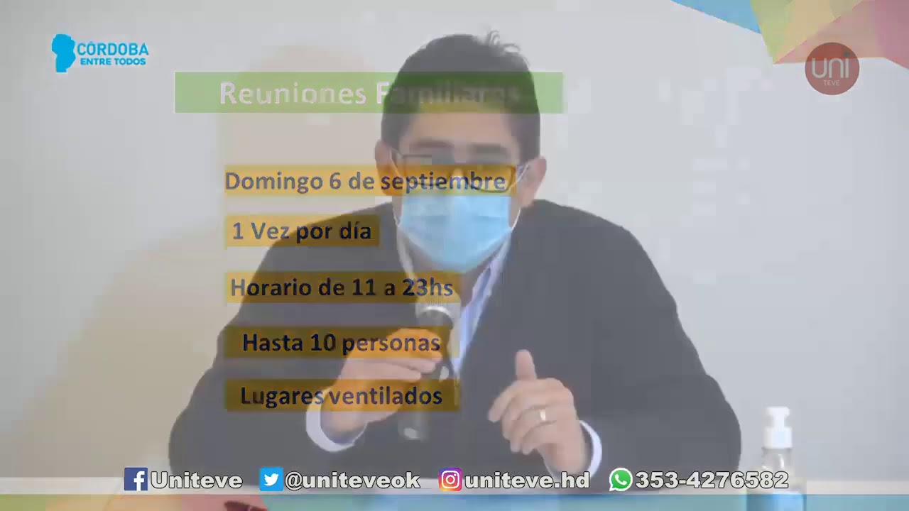 04/09/2020 Luego del pedido público del gobernador Juan Schiaretti a la Nación, la Provincia anunció hoy la vuelta de las reuniones familiares a Córdoba, que serán los días domingo. En conferencia de prensa desde la sede del Centro de Operaciones de Emergencia, el ministro de Salud, Diego Cardozo, brindó detalles sobre la medida y otras disposiciones de acuerdo a la situación sanitaria actual, en el marco del avance de la pandemia del Coronavirus.